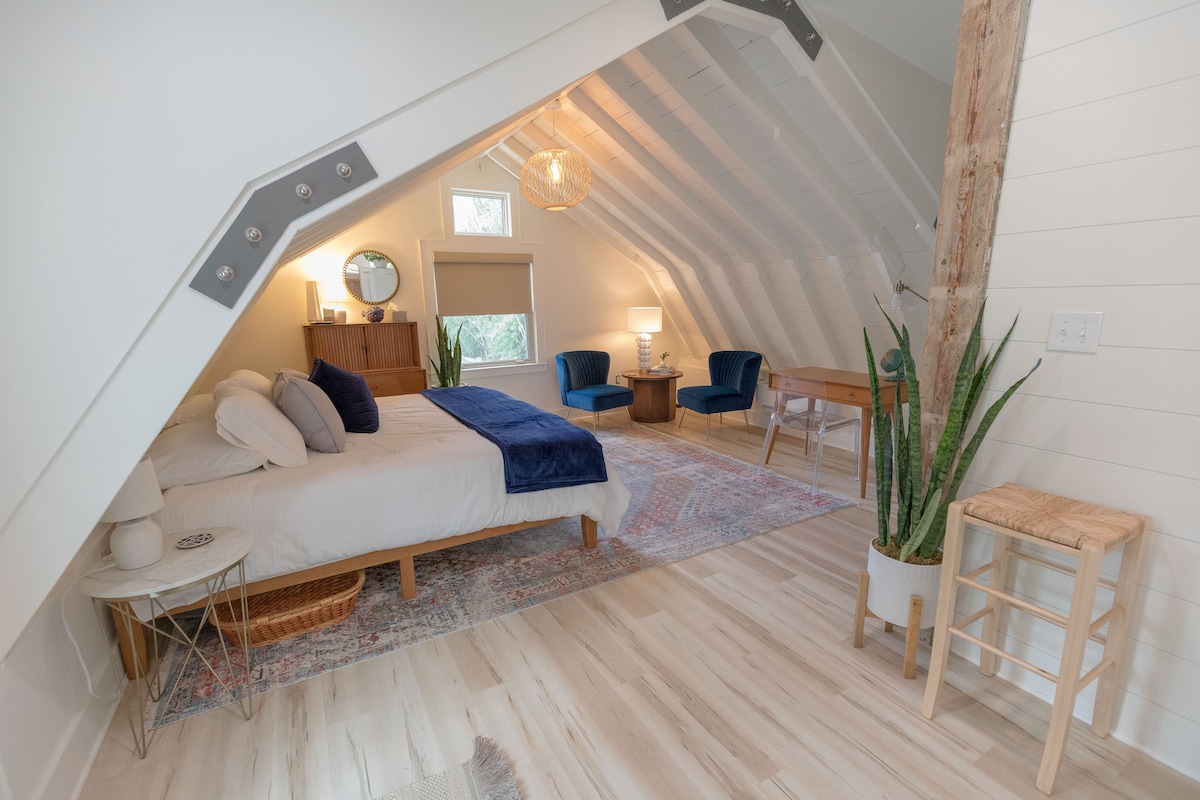 Üdvözlünk a felújított 1950-es évekbeli hintóházunkban, amely az East Hill-i otthonunk mögött rejtőzik. Lépcsők a festői Bayview Parktól evezős deszkákkal, kenukkal és bérelhető kerékpárokkal, valamint egy rövid autóútra a 12th Avenue-n található bárokhoz, sörfőzdékhez és éttermekhez. Pensacola történelmi belvárosa vásárlási, étkezési és élő zenét kínál a Vinyl Music Hallban, valamint előadásokat a Saengar Theaterben. Ráadásul a Pensacola Beach lenyűgöző fehér homokja rövid és lenyűgöző autóútra található.