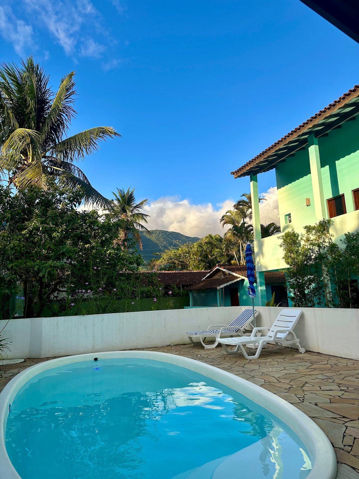 Kerüld a sorban állást a kompon! Az autódat São Sebastião egyik parkolójában hagyhatod, és hajóval átkelhetsz (a hajó nem része a ház vagy a parkolás bérlésének). 15 perc múlva egy privát mólón leszel Ponta das Canasban, a szigettől északra. Szárazföldön 30 percre van a fedett garázskomp. 4 lakosztály tengerre néző kilátással, légkondicionálóval és ventilátorral, szobákkal és erkéllyel, vízi sportok építésével. Hajó ki van adva.