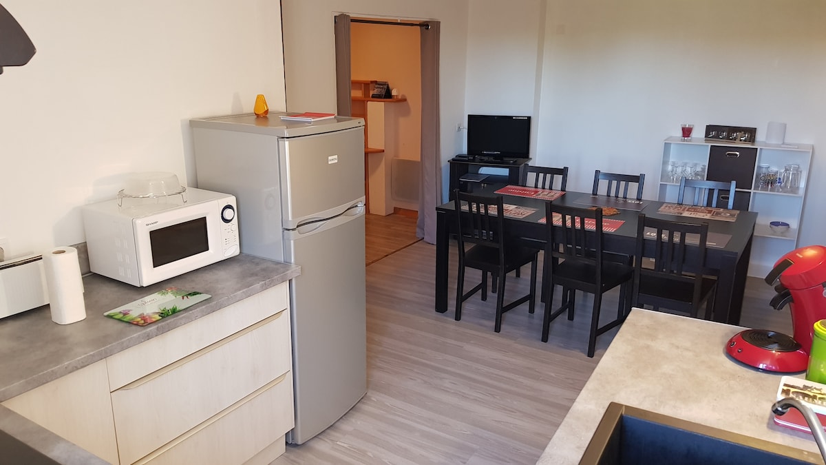 Felújított lakás egy nagyon csendes falucskában található ház 1. emeletén. Üzletek és fő szabadidős tevékenységek közelében. Közel az A89-es autópálya 13-as kijáratához Bordeaux-ból. A 14-es kijárat (Saint Astier/Neuvic) a Brive-ból érkezik. Ha további információra van szükséged, a 0608843498-as telefonszámon érhetsz el. weboldal: https://www.gitegabinou-neuvic.fr/