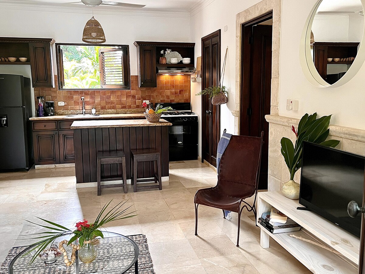 Ébredj az óceáni szellőre ebben a hangulatos, két hálószobás, két fürdőszobás szálláshelyen, amely mindössze 300 méterre található a Perla Marina aranyszínű homokjától. Kezdd a napot reggeli úszással, lazíts naplementei sétákkal, és élvezd Cabarete békés trópusi hangulatát. Tökéletes pároknak, kis családoknak, barátoknak vagy digitális nomádoknak, akik kényelmet, nyugalmat és könnyű hozzáférést keresnek a tengerparthoz.