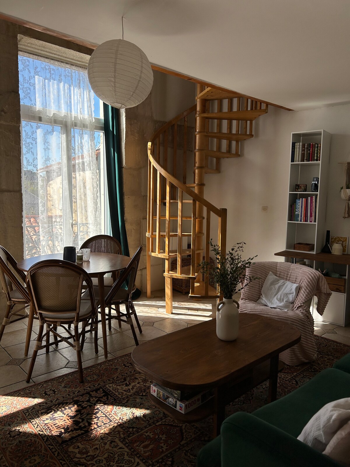 Logement calme, rénové et indépendant situé au centre ville de Pérols. Duplex: - pièce de vie au RDC avec: canapé-lit (140), TV, Wifi, cuisine équipée (four, lave linge, frigo, cafetière Nespresso, plaques cuisson) et WC indépendant. - 1er étage, chambre avec lit 160, dressing, SDB+WC avec fenêtre et climatisation. Cour orientée sud. Parking gratuit à l'extérieur. Arrêt de tramway, Arena et Parc Expo 10 min à pied Proximité centre ville, plages à 5 min en voiture ou 15 mins en tram + navette.