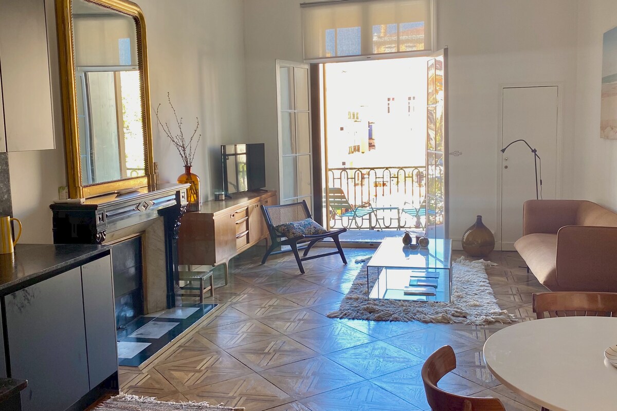 80 m2-es burzsoá lakás nagy erkéllyel, amely a Place République-ra néz, és minőségi szolgáltatásokat kínál. Egy nagy, 35 m2-es haussmani stílusú nappaliból áll, felszerelt konyhával, egy 160 cm-es ággyal rendelkező kétszemélyes hálószobából és egy víkendházi hálószobából félemeletes franciaággyal és kanapéággyal. Fürdőszoba zuhanykabinnal, külön WC-vel. Légkondicionálás Háztartási textíliák biztosítva. Ideális elhelyezkedés a történelmi központ szívében.