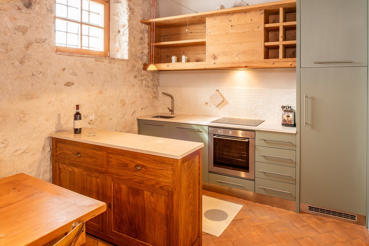 Appartamento piacevole e finemente ristrutturato, curato nei minimi particolari, pur conservando integro l'aspetto storico del locale. La stanza da letto è interamente in sasso, come era originariamente e risulta fresca in modo naturale d'estate e calda, grazie al riscaldamento a pavimento, durante l'inverno . La cucina è attrezzata di tutto quanto necessita per un pranzo o per una piacevole colazione. All'esterno vi è un giardino con angolo relax.