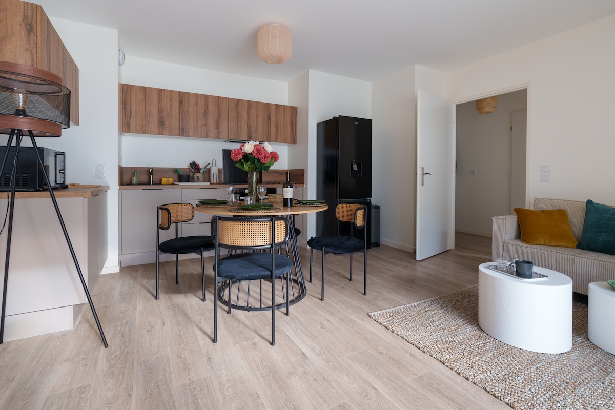 L'appartement de 60m2, très lumineux et calme, est idéalement situé dans à 10 minutes en voiture de la gare TGV Bordeaux Saint Jean, 35 minutes de la Dune du Pyla, 1h de Lacanau et du bassin d'Arcachon. L'appartement dispose de tous les équipements essentiels pour votre confort! Vois pourrez vous déplacer facilement en bus, tram et le centre de Bordeaux se situe même à 20 min en vélo.