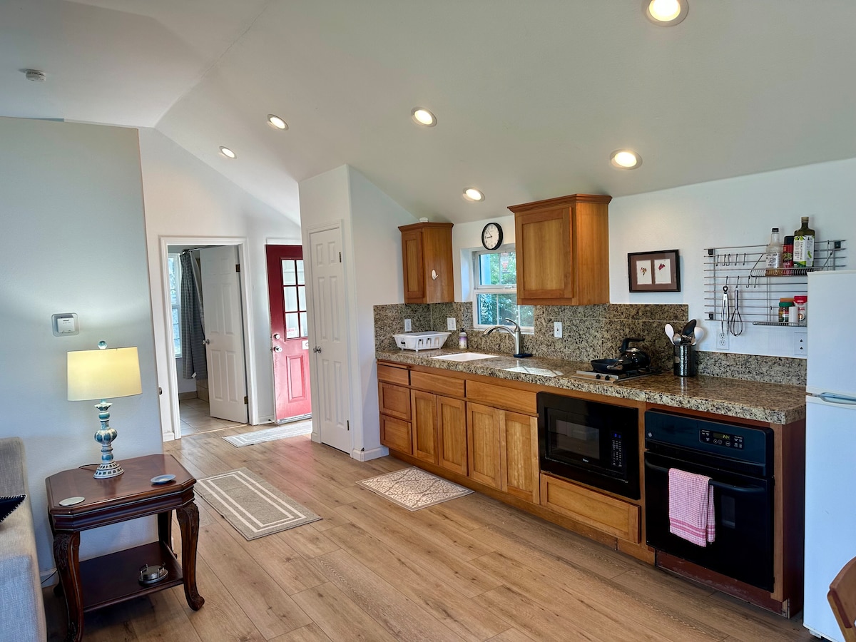 Gyere, és élvezd a „Tiny Home” loftlakásunkat, mindössze három rövid háztömbnyire Petaluma belvárosától. A „Tiny Home” nevet a hat hónapig ott élő gyerekeink alkották meg, új építésű, és rengeteg természetes fénnyel, légkondicionálóval, gyors vezeték nélküli internettel, intelligens TV-vel, légtisztítóval, Nespresso kávéfőzővel felszerelt teakonyhával, mini hűtőszekrénnyel, elektromos vízforralóval, főzőlappal és mikrohullámú sütővel rendelkezik. A tér 550 négyzetláb.