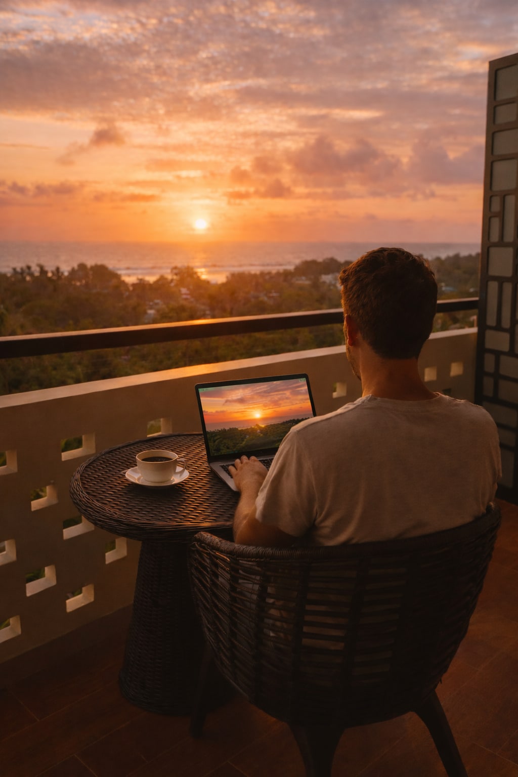 Csendes szoba erkéllyel az Echo Beach közelében|Naplementés kilátás