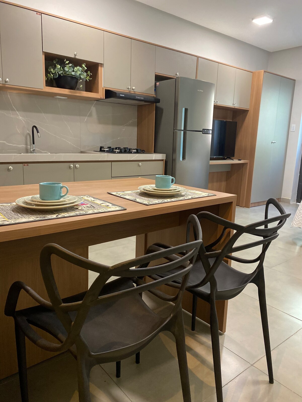 Légkondicionált, jól felszerelt ✨lakás, ipari/rusztikus stílusban, a KM2 környéken, 5 percre a központtól, a bevásárlástól és az Orlától (autóval). - Garázs (éjszakai parkolás autóval) ✅ – Gyors Wi-Fi ✅ - Okostévé Netflix-szel, Paramounttal és YouTube Premiummal ✅ - Légkondicionáló és mennyezeti ventilátor ✅ - Teljes kennel ✅ – Törülközők és ágyneműk ✅ -Redging for rest ✅ - Munkahely és még sok minden más! ✅ 📍A Pátio de Eventos Ana das Carrancas ugyanabban a környékén található, ahol a város híres São Joãoja és más műsorok zajlanak.
