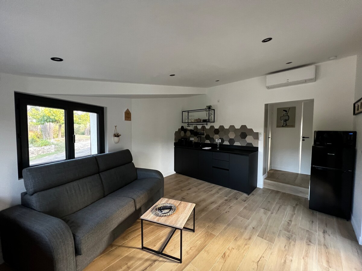 Ce logement paisible offre un séjour détente pour toute la famille. Il s’agit d’un appartement entièrement rénové , que nous avons voulu le plus confortable et accueillant pour les voyageurs. L’appartement se situe en rez de notre maison mais l’entrée est indépendante. Il est composé d’un coin repas extérieur, d’un salon avec cuisine, d’une salle d’eau et d’une chambre. Idéal pour une famille avec enfants. Nous acceptons seulement les petits chiens et un seul à la fois.
