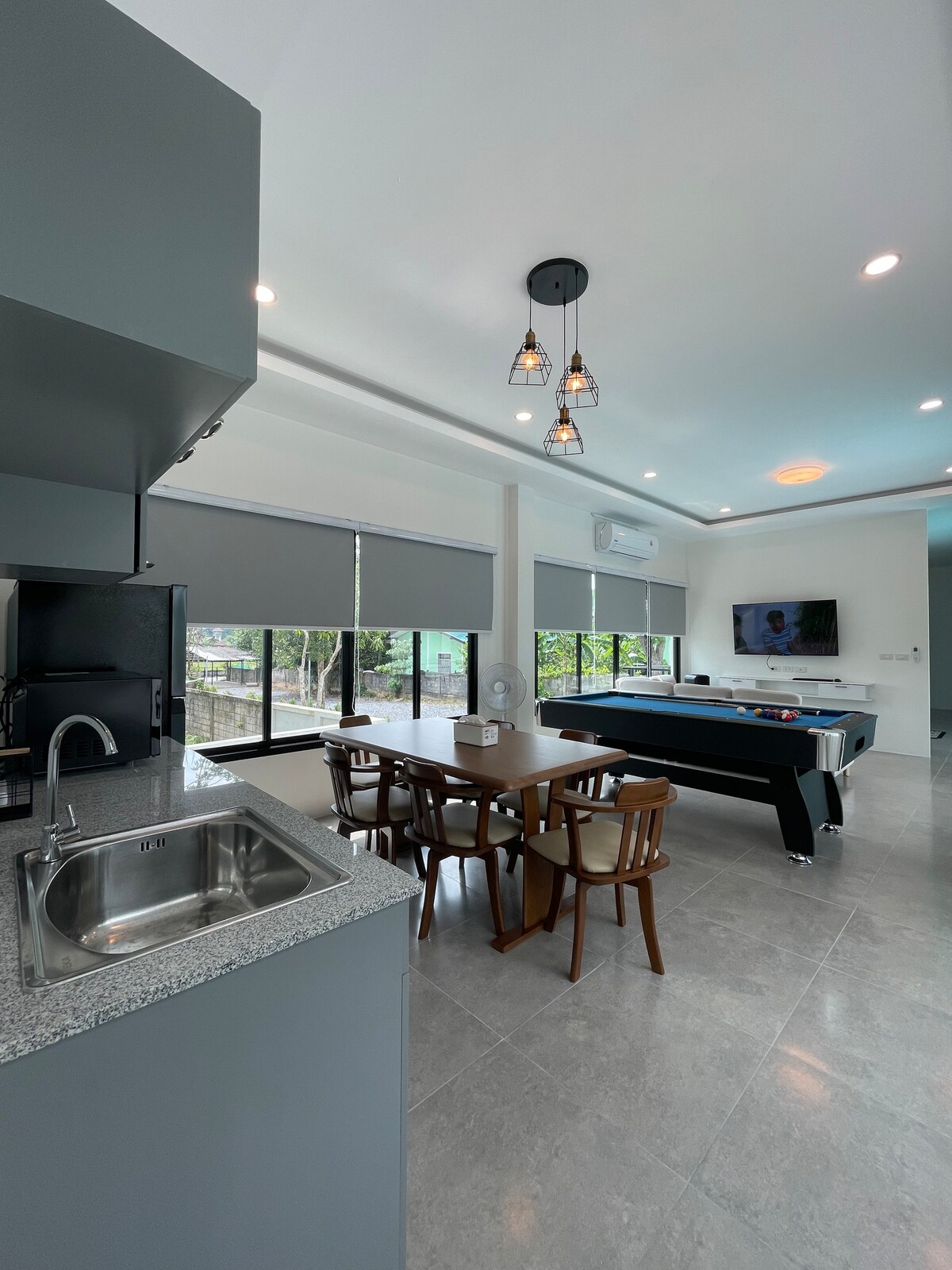 Tágas, természetes környezet, parkoló több autó számára, tökéletes családoknak vagy baráti társaságoknak, akik magánéletre vágynak. 🛌 3 hálószoba, 4 fürdőszoba 🛋️ Nappali • Kanapé/biliárdasztal/okostévé/karaoke • Étkezőasztal 6 személyes ülőhellyel • Mikrohullámú sütő/kenyérpirító/hűtőszekrény/ivóvíz-adagoló 🍽️ Konyha 3x7 méteres sós vizű 🏊🏻♂️ medence gyermekzónával 🚗 Közlekedés 5 percre a Hat Yai Parktól 10 percre Hatyai Village-től 20 percre a Lee Garden Plazától és a Central Festival Hatyaitól 30 percre a strandtól