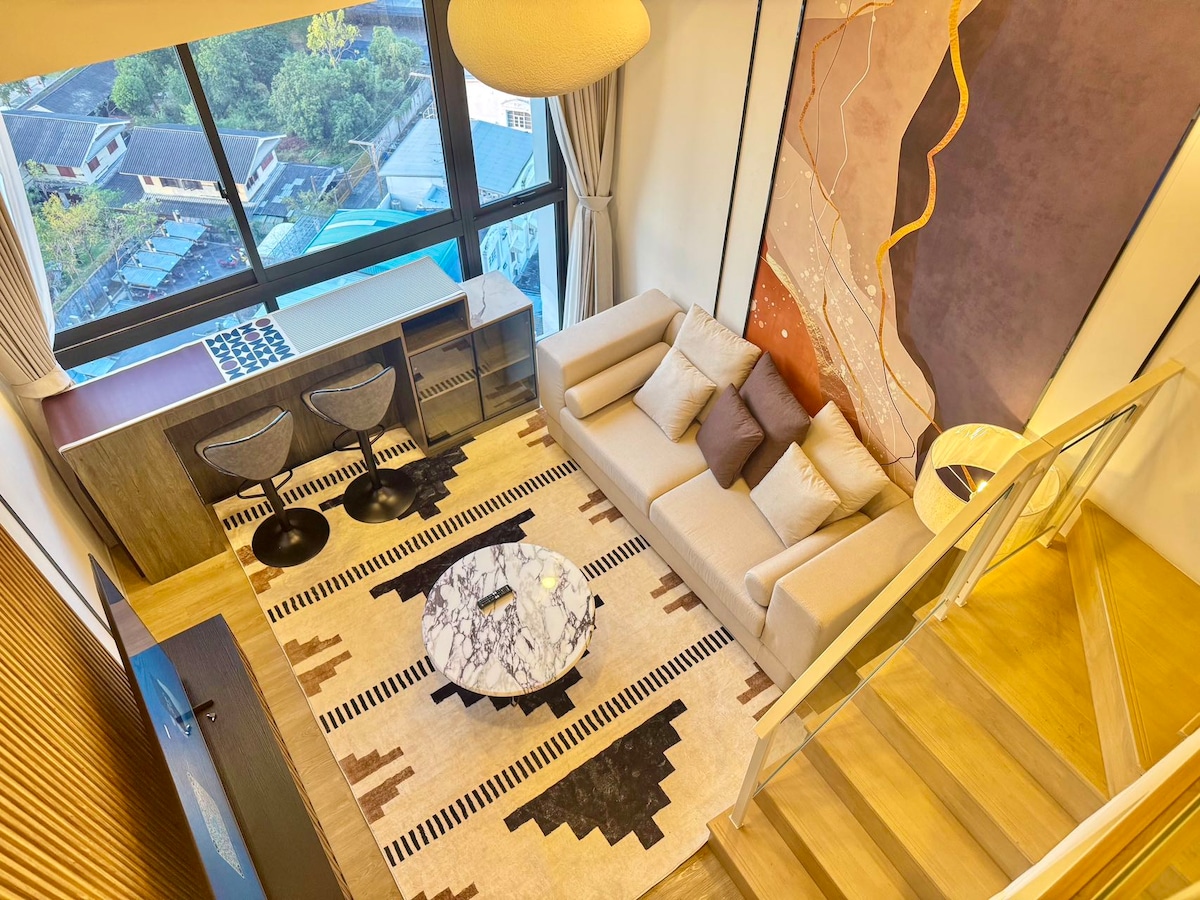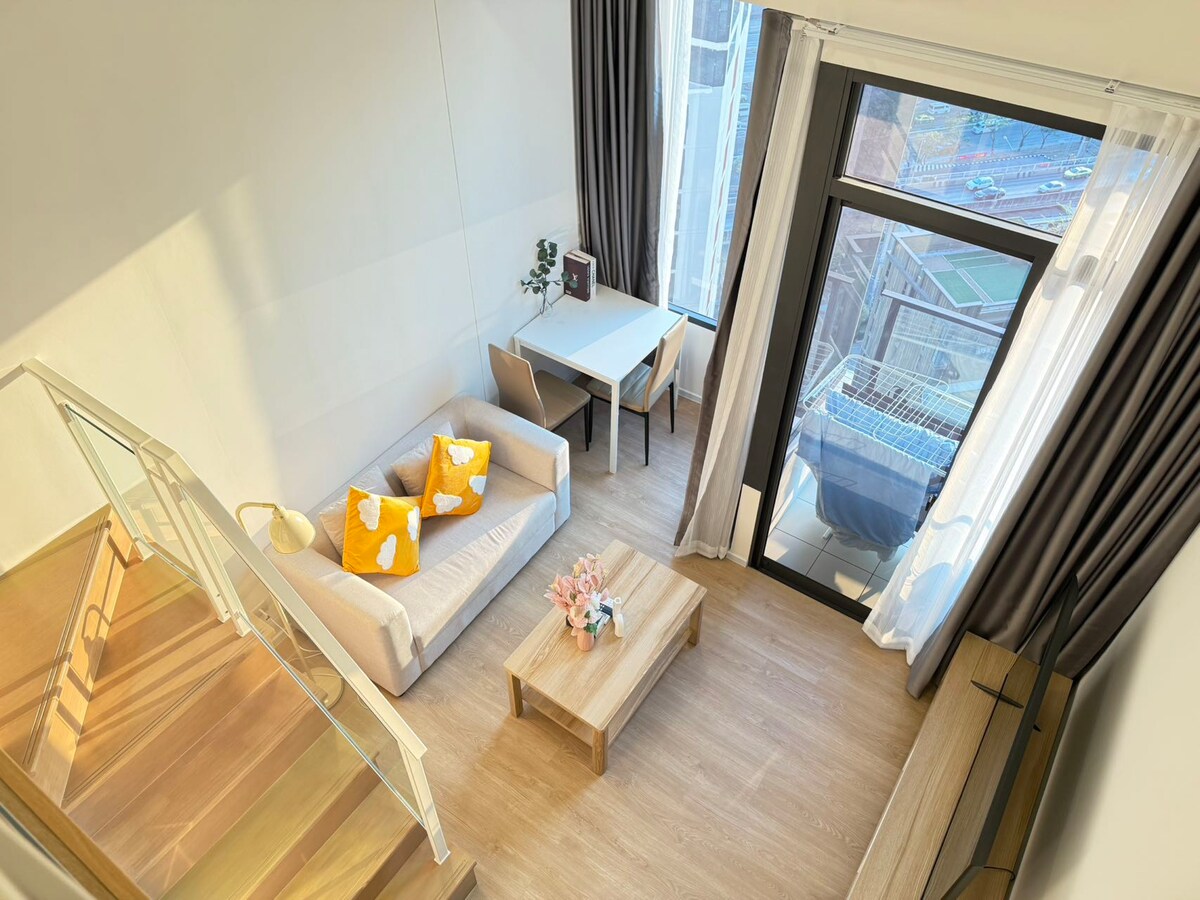 C9-1B-loft复式楼下就有餐厅和美甲店,健身房和泳池兼备