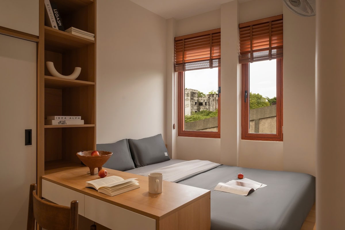 Az egyedi helyemnek saját stílusa van. A Phan Dinh Phung utcán, a Phu Nhuan kerületben található, és 5 perc alatt el lehet érni a 3. kerületet, 10 perc alatt pedig a repülőteret. - A stúdióegység erkélyes - 1 kényelmes ágy - Fürdőszoba: törölköző, meleg víz, sampon, tusfürdő, WC-papír - Konyha: hűtőszekrény, alapvető konyhai eszközök - Lift, mosógép, okostévé, légkondicionáló, kanapé, szekrény, hajszárító, gyors wifi - Egyszerű önálló bejutás/távozás A takarítási szolgáltatást hetente kétszer, a motorkerékpáros parkolást pedig INGYENESEN BIZTOSÍTJUK.