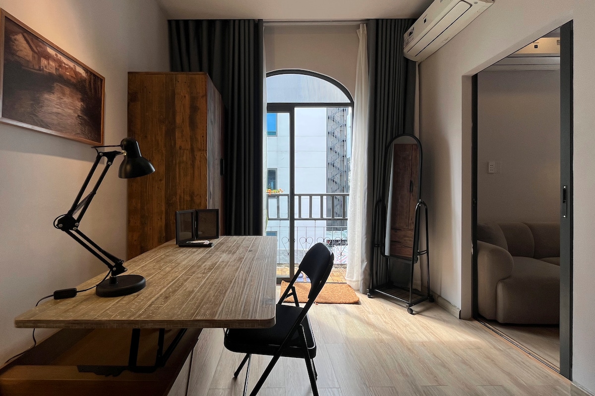 Located on Nguyen Son Ha St, a peaceful hidden gem tucked between the vibrant Cao Thang and Vo Van Tan streets. -The Space: Two large windows with amazing natural light. Stylish, airy, and a peaceful retreat from the city buzz. -The Location: 1-3min walk to Saigon’s best local eateries, chic cafes, and convenience stores. -The Vibe: Live like a local with District 1 just minutes away. Fast Wi-Fi | Elevator |Washing Machine & Dryer | Central Location