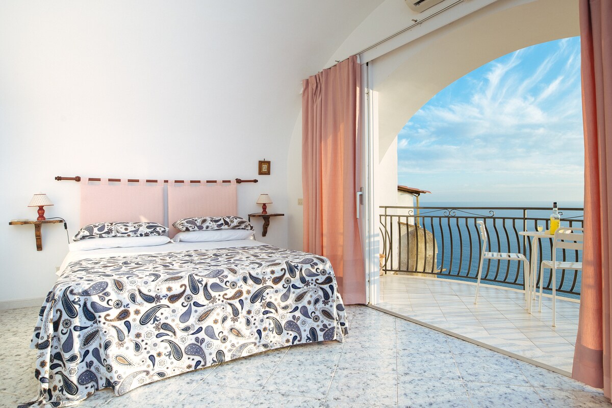 Appartamento completamente arredato. Dotato di 1 camera da letto (matrimoniale), 1 bagno con doccia e lavatrice, ampio soggiorno (con possibilità di 3° letto aggiunto), cucina attrezzata, ampio soggiorno con fantastica vista mare e di Positano. L'appartamento è situato al inizio della scala che porta al SENTIERO DEGLI DEI ed e ‘ accessibile tramite 250 scalini , l appartamento e’ adatto a persone giovani , abituati a fare esercizio fisico!non adatto a persone anziane!