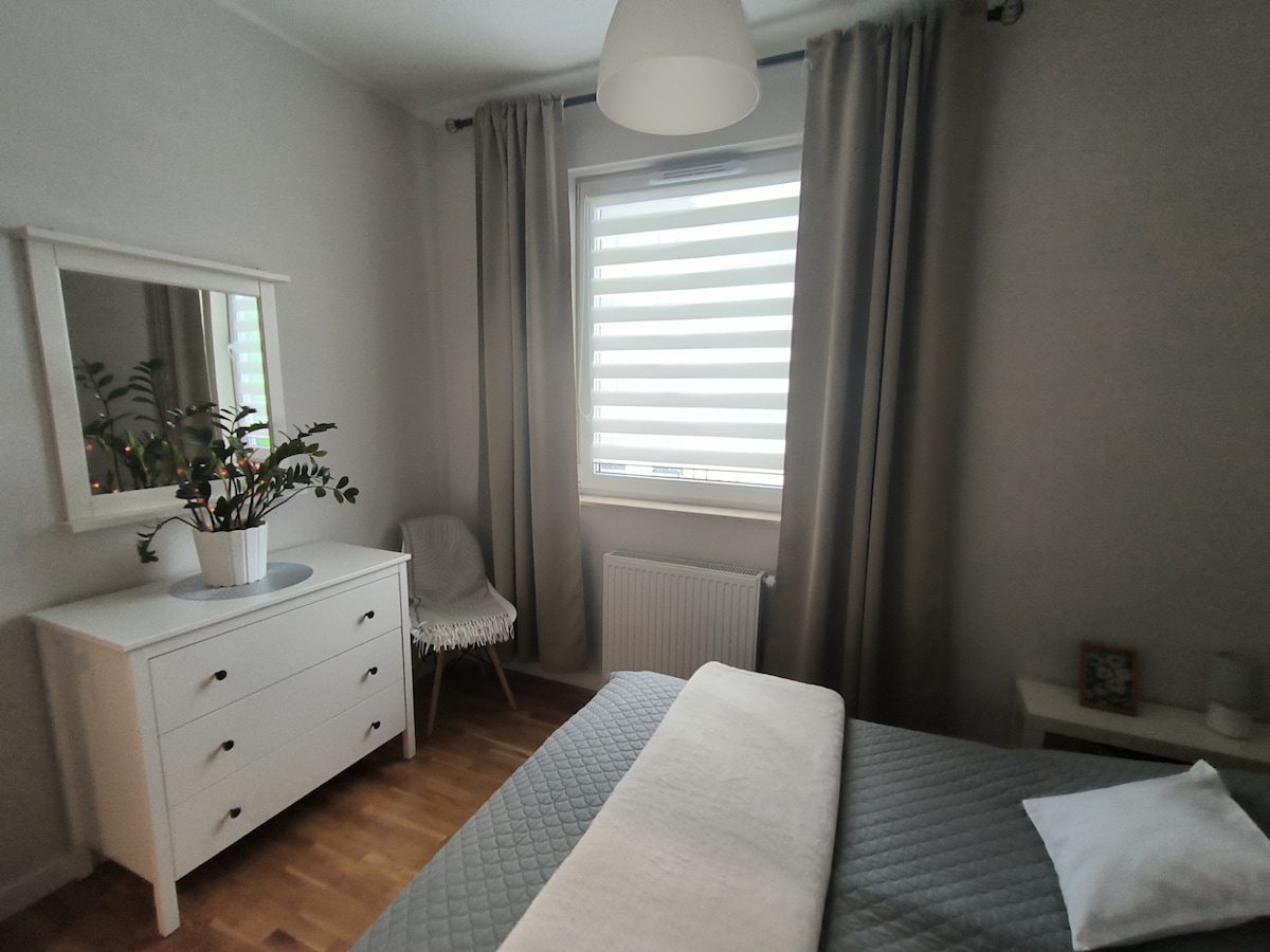 Hangulatos lakás (50m2) nagyszerű helyen (5 percre a Natolin metrótól: 20 percre a belvárostól, 15 percre a Chopin repülőtértől). Rengeteg élelmiszerbolt van a környéken, köztük éjjel-nappal is. A lakás teljesen felszerelt, kényelmes ágy, kényelmes kanapéágy, rengeteg szekrény és minden, amire szükséged lehet a konyhában történő főzéshez. Távmunkához - íróasztal és karosszék. Csecsemőknek biztosíthatok utazóágyat. Nagy parkolóhellyel rendelkezik a mélygarázsban. Az épületben van lift (nincs küszöb/lépcső).