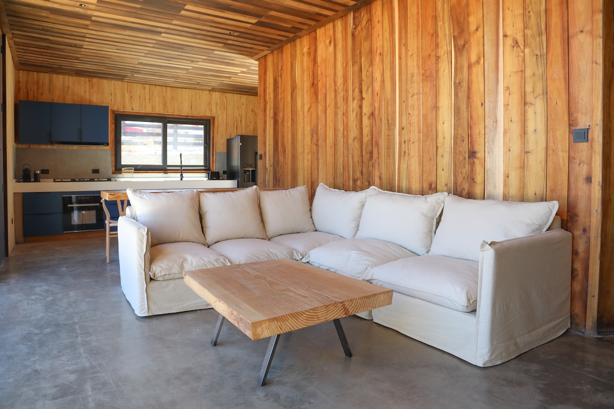 Viento Sur Pichilemu is the place you’ve been looking for. Our Tiny Houses are designed for relaxation and enjoyment, combining, sea view, cozy spaces with local details and craftsmanship that reflect the spirit of the area. Privileged location, just minutes from Punta de Lobos, ideal for surfers, ocean lovers, or anyone looking to explore Pichilemu from a natural and exclusive setting. Supermarket, coffee shops, and restaurants super easy to reach by car or walking.