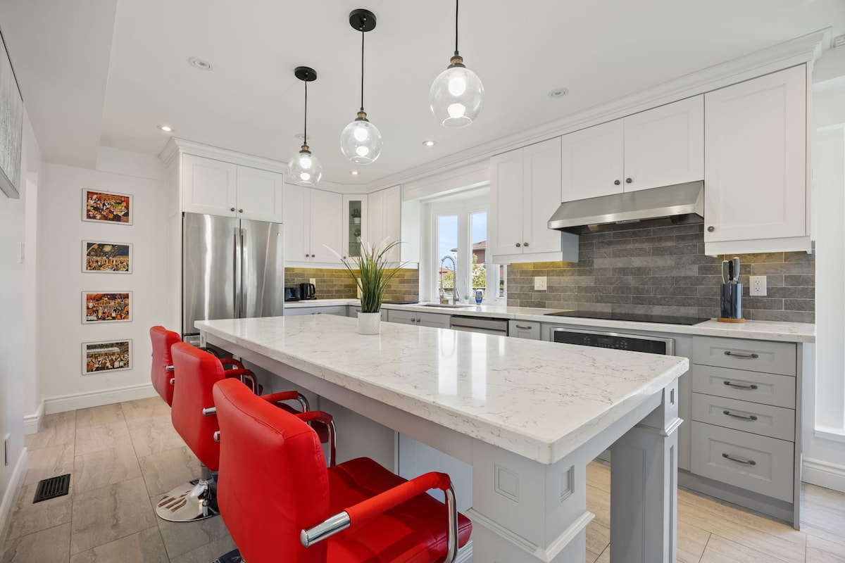 Why you will love your stay here: - ***ENTIRE HOME*** No one will be on the property but those on the booking. This is a DETACHED house. No connecting houses. - Open concept on the main floor so you can connect and create memories - Dedicated work from home spaces . Cat 6 ports -The 2nd floor has 4 different rooms where you can unwind and take a much deserved break - 10ft ceilings on a corner lot with lots of sunlight - Central Hub to Toronto (45 min drive)