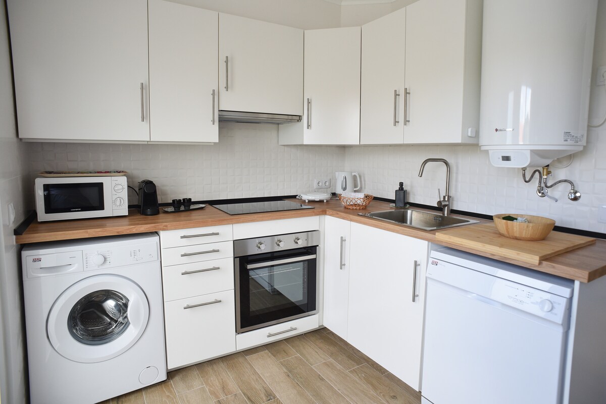 T2 tipológiai lakás 2022-ben épült, felszerelt konyhával, mosógéppel és 2 hálószobával, franciaággyal. Csendes, központi elhelyezkedésű hely.