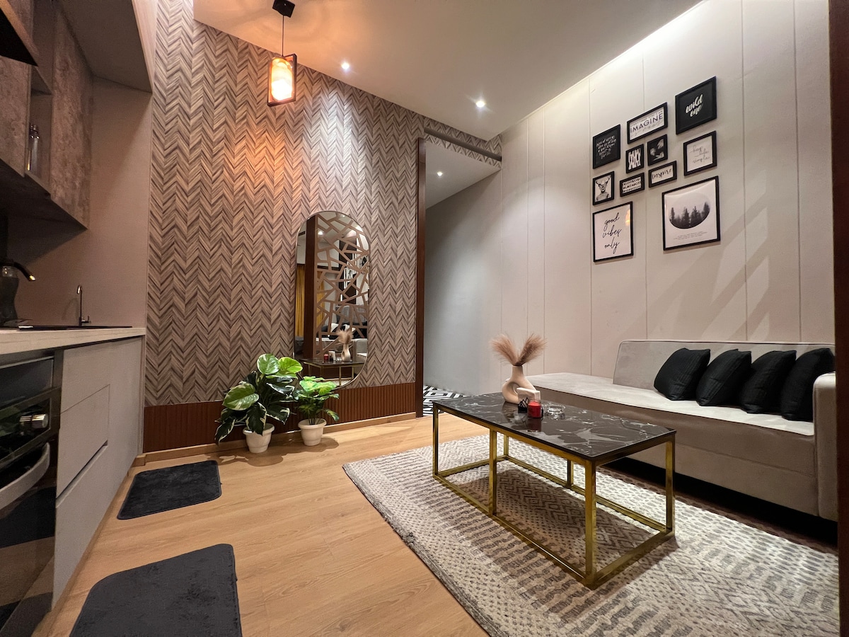 Experience a serene stay that blends modern and contemporary European aesthetics. With clean surroundings, curated details, and muted wall tones, the space offers a calm and sophisticated atmosphere ideal for couples or working professionals. Includes Free Parking. Close to Expo Ground The studio is equipped with essentials for a comfortable short stay, including a cozy bed, functional kitchenette, high-speed Wi-Fi. Perfect for those seeking a quiet retreat with effortless charm and convenience