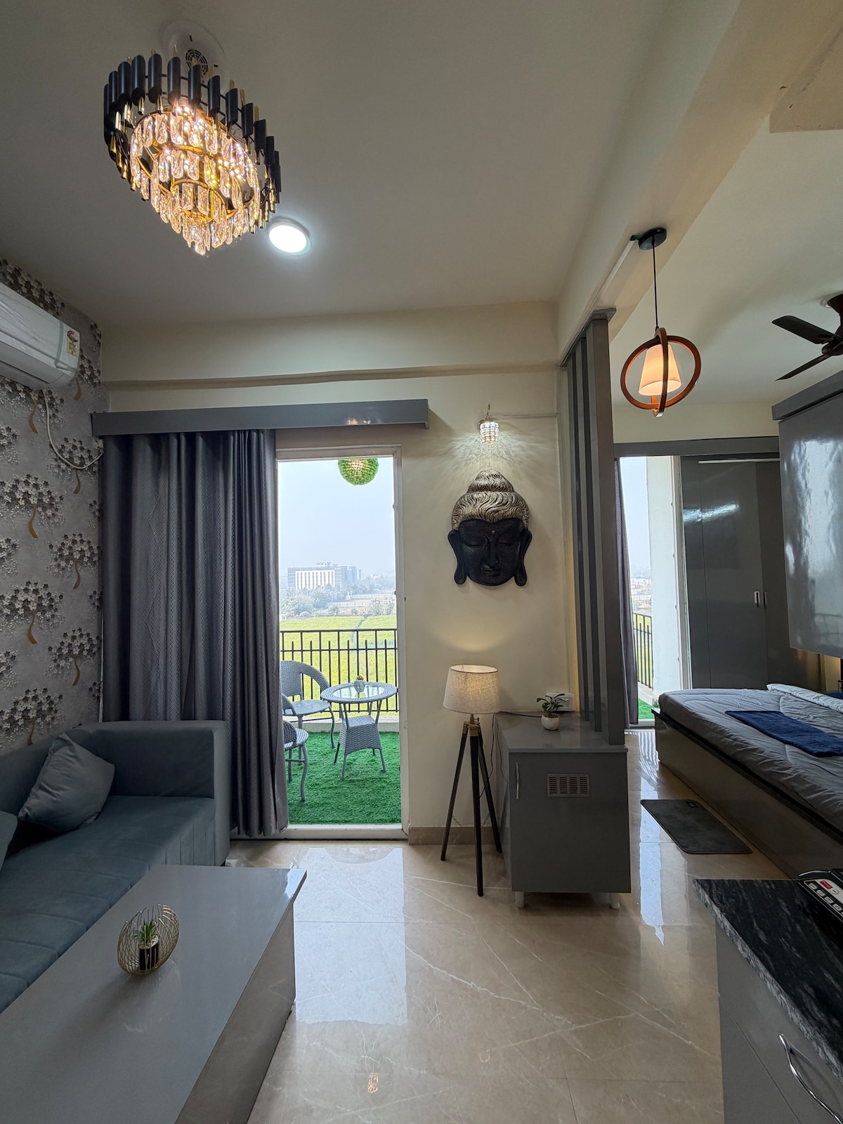 ✨ Luxury Studio with Skyline Views | High Floor | Balcony | Prime Noida Wake up above the city in this elegant high-floor studio apartment, thoughtfully designed for guests who appreciate comfort, privacy, and a premium stay experience. Located in one of Noida’s most sought-after towers, this space offers beautiful open views, a private balcony, and hotel-quality interiors—perfect for business travellers, couples, and long or short stays.