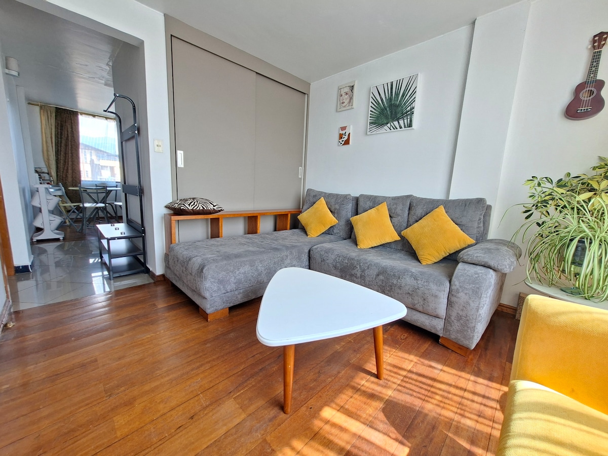 Departamento entero con cocina y sala. Ideal para parejas, o familias pequeñas. El espacio: Sala: Sofá en L amplio y cómodo (apto como cama para un 3er huésped/niño). Cocina: Equipada con refri grande, horno microndas y comedor. Dormitorio: Cama de 2 plazas, closets amplios y silencio. Servicios: Baño privado con agua caliente, WiFi y ubicación céntrica. ¡Siéntete como en casa con la privacidad que mereces!