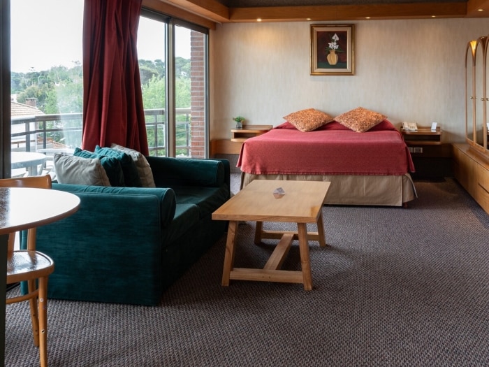 Relájate en un complejo excepcional con todas las comodidades. Monoambiente, sin cocina, con balcón (cuenta con pava eléctrica y frigobar). Tiene aire acondicionado, TV por cable e internet wifi. No incluye desayuno. Incluye ropa blanca - toallas para pileta. Piscina interior y exterior climatizada. Salón de juego. Parrilla a gas de uso compartido (con reserva de turno y costo adicional).
