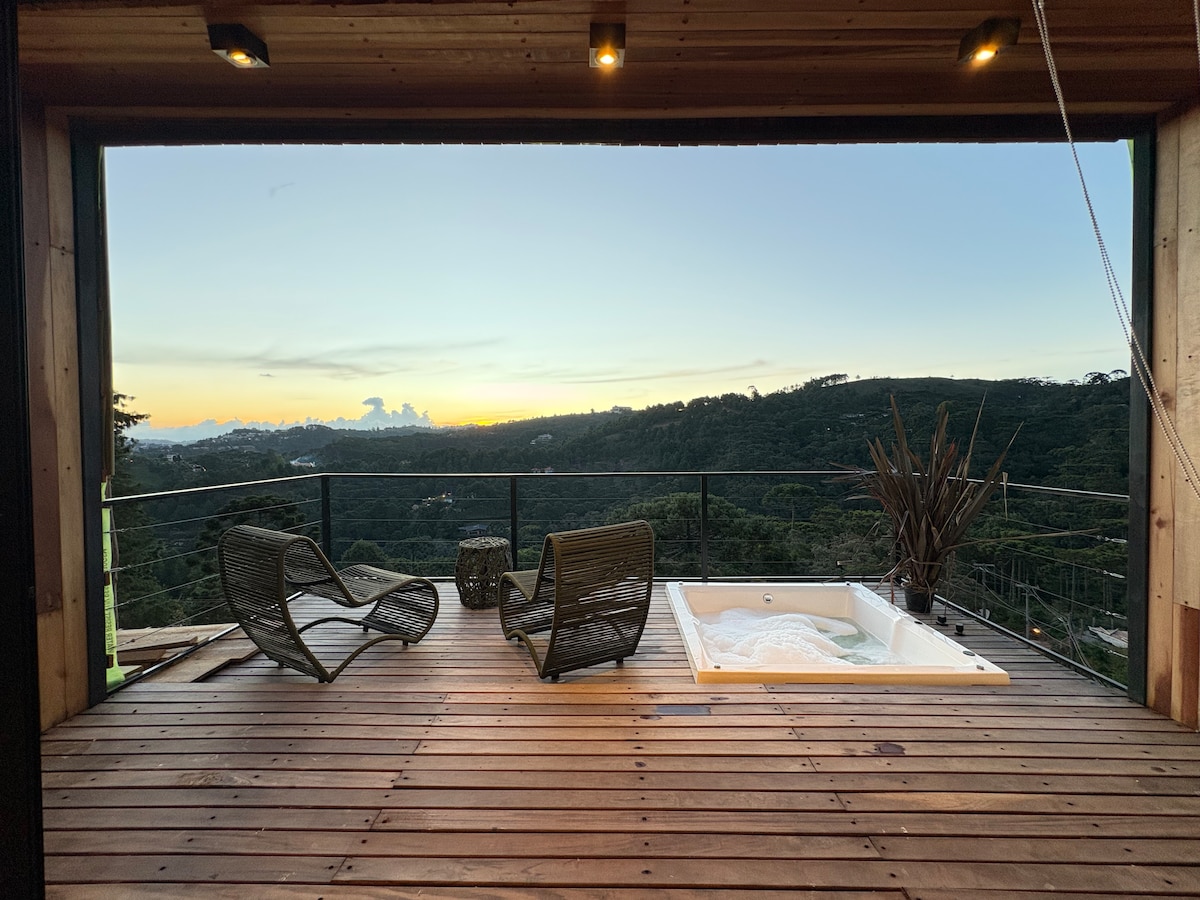 A Cabana Beija Flor egy meghitt szálláshely Campos do Jordãoban, tökéletes azoknak a pároknak, akik magánéletre, csendre és a természettel való kapcsolatra vágynak. A víkendház hangulata meghitt és romantikus, a pezsgőfürdő pedig ideális a pihenéshez és a hegyi klíma élvezetéhez. A helyet az Alexa automatizálja, így beállíthatod a fényeket és a zenét az ideális hangulat megteremtéséhez. Exkluzív hely, ahol lelassíthatunk, és élvezhetjük az együtt töltött időt.