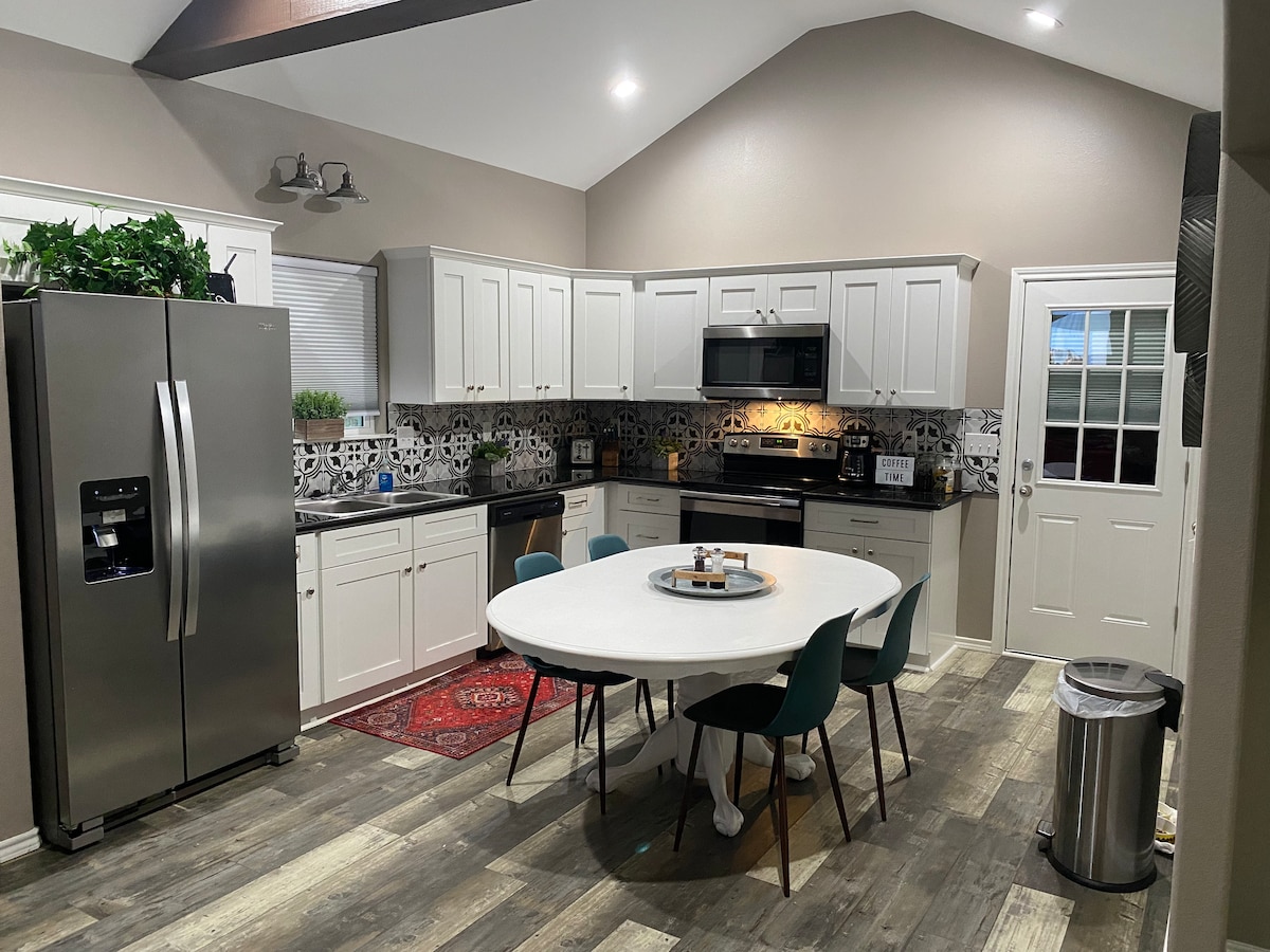 We have a farmhouse-themed guest apartment with its own private entrance and private deck with a view of a private lake through the trees in the piney woods of East Texas. The room features brand new appliances as well as a coffee bar. There is a very comfortable king-sized bed and a hide-a-bed. There is plenty of closet space. The kitchen is fully stocked with dishes and utensils. The laundry room is also accessible. This listing is attached to my house but we are quiet neighbors!