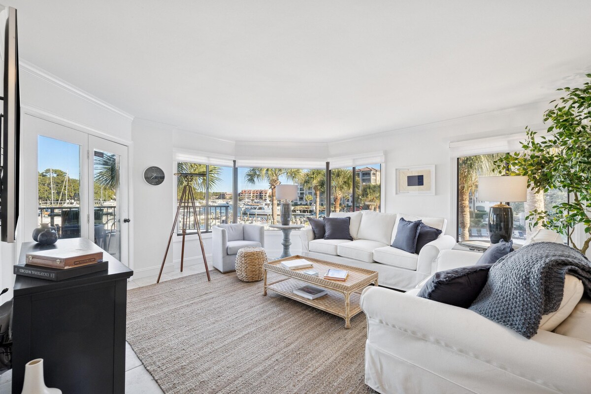 Harbourside Haven – Waterfront Luxury Villa, Shelter Cove, Hilton Head Island Üdvözlünk Harbourside Havenben, az előkelő vízparti kiruccanásodon a tekintélyes Shelter Cove szívében. Ez a gyönyörűen berendezett, 1 hálószobás, 1,5 fürdőszobás villa kényelmesen elszállásol 2 főt (a rendelkezésre álló légággyal további 2 főt is el lehet szállásolni), és csúcskategóriás felületeket, dizájnerbútorokat és az otthon minden kényelmét kínálja. Tökéletes menedék azoknak a pároknak vagy kis családoknak, akik kifinomult, mégis pihentető szigetélményre vágynak.