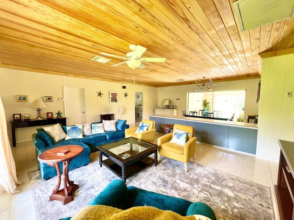 This waterfront cottage has everything that a vacation home on the water demands. Walk out of the living room door onto the waterfront patio and plunge into the crystal clear water to swim or snorkel. The master Suite, located on the 2nd floor, has a lovely balcony with elevated views of Nassau Harbour and Atlantis Resort. Enjoy coffee watching the sun rise, or a glass of wine watching the sunset. Soak up the sun in reclining lounge chairs while you listen to the ocean waves just inches away.