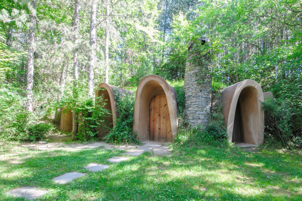 In the heart of the Pirin Mountain lies an eco-village Omaya.This unique place is one of a kind with it's magical atmosphere and owns non-traditional architecture-7 villas made all of natural elements like stone,clay and wood, located in 500 dka forest.If you want to relax and escape the city rush, you like long walks surrounded by nature or just love fishing- it's your place! Enjoy also our swimming pool, 2 restaurants with all organic food served, table tennis and many more outdoor activities!