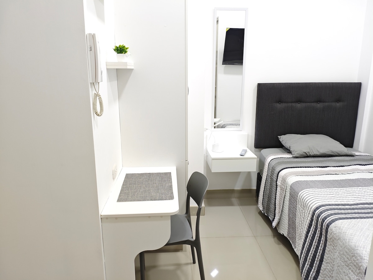 Tökéletes utazóknak, turistáknak vagy szakembereknek. Kényelmes mini lakás franciaággyal, légkondicionálóval, meleg vízzel, teakonyhával, mosó-szárítógéppel és gyors Wi-Fi-vel. Kilátás a medencére és az utcára. Piura biztonságos, központi részén található, éttermekhez, tömegközlekedéshez és bevásárlóközpontokhoz közel. Könnyű megközelíthetőség. Élvezd a kényelmes és pihentető szállást!