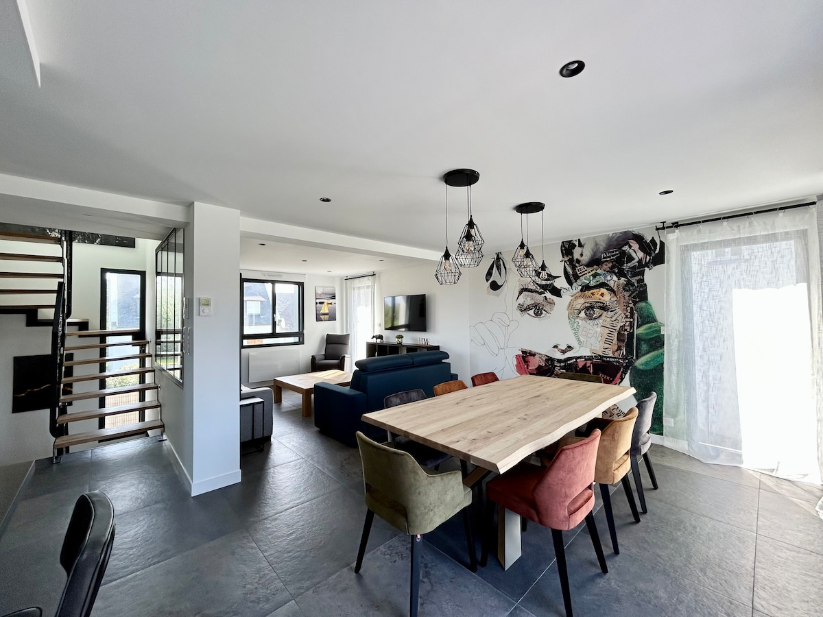 Venez séjourner à Fouesnant, au coeur de la magnifique Riviera Bretonne. Idéalement placée à seulement 2 km des plages de Mousterlin, cette jolie maison bois située en impasse offre un environnement paisible et reposant. Ce plain pied de 120m2 s 'ouvre sur une grande pièce à vivre et propose 2 salles de bain et 3 chambres spacieuses dont une suite parentale (18m2) . La pièce de vie lumineuse donne accès à une terrasse exposée plein sud et son jardin paysagé.