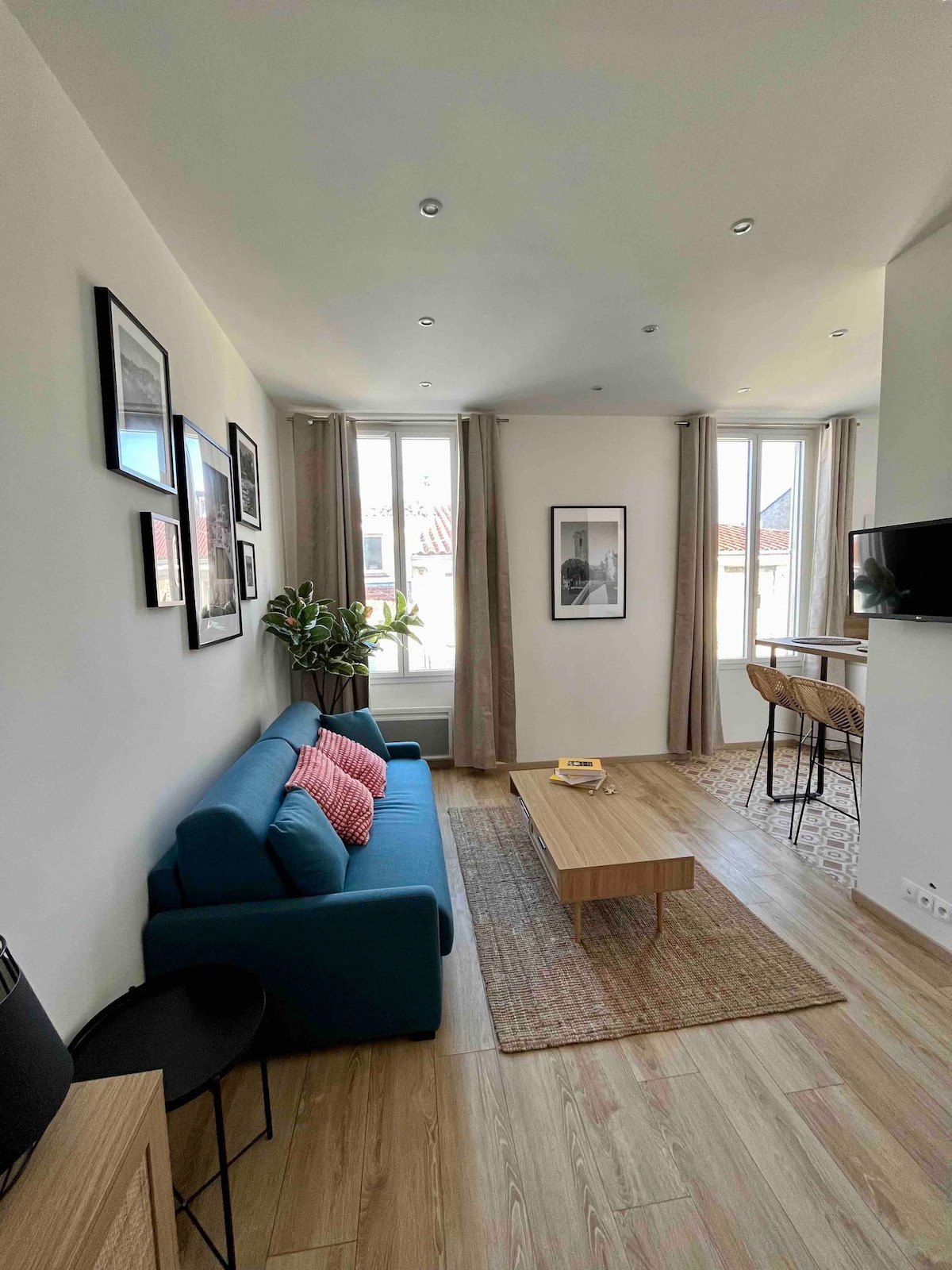 Lenyűgöző lakás 2 hálószobával és 1 fürdőszobával (és külön WC-vel), közvetlen kilátással a tengerre, a strandra és a hegyre. Minden modern kényelmi szolgáltatással (klíma, WIFI, APPLE TV...) és gyönyörű dekorációval ez az ingatlan mindent kínál: jól felszerelt konyha (mosógép és külön szárítógép), nagy nappali, nagyszerű étkező. Az ágyneműt és a törölközőket kozmetikai mintákkal együtt biztosítjuk. A régi Antibes szívében található, közel a vasútállomáshoz, a Buse-hoz és a provence-i piachoz!