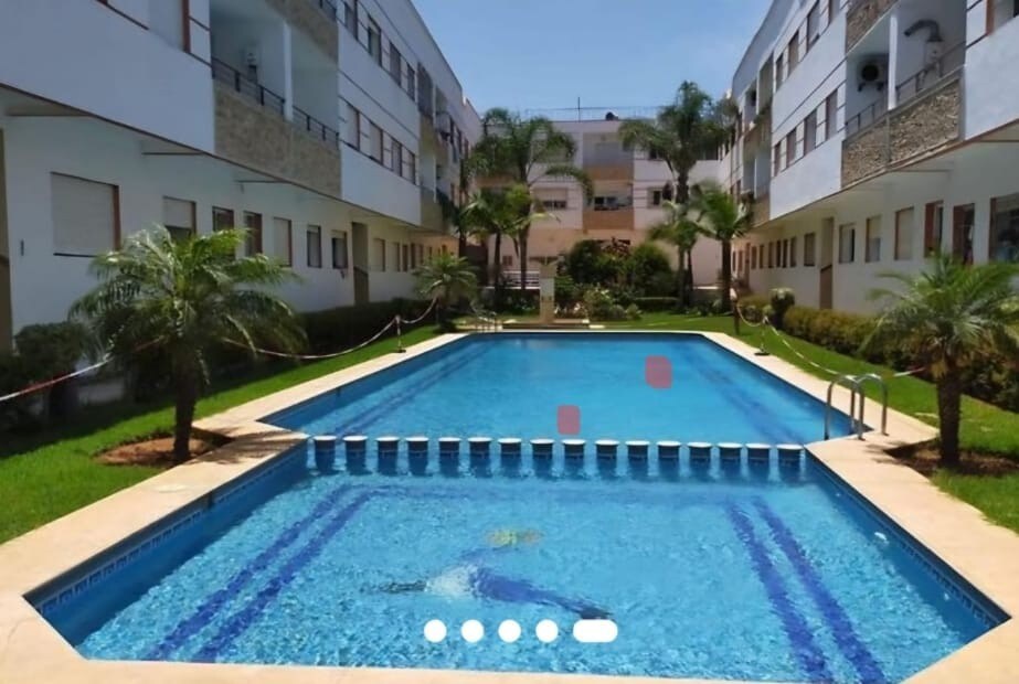 Napfényes panorámás apartman óceánra néző terasszal és kis privát medencével. Master suite TV-vel és fürdőszobával. Második hálószoba teraszra nyíló ajtóval. Második fürdőszoba. Kényelmes nappali, 50 hüvelykes TV, Netflix és Wi-Fi, felszerelt konyha bárral, központi légkondicionálás. Kapuzott és biztonságos lakás parkolóval és garázzsal. Nagy közös medence egész évben nyitva. Cherrat és Bouznika strandja csupán pár percre található. Teljesen nyugodt. Ideális családoknak és pároknak.