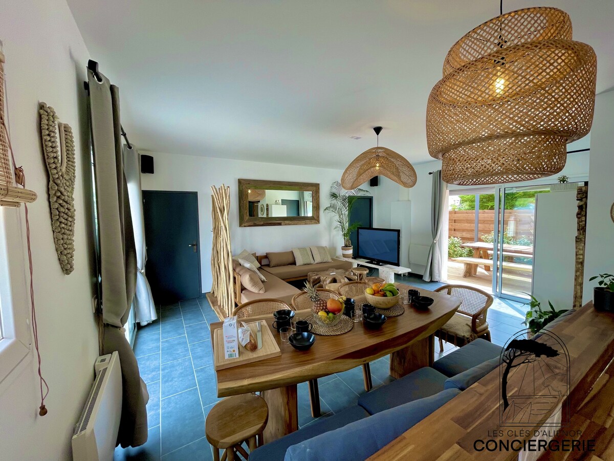 Découvrez votre havre de paix bohème à St-Denis d'Oléron, à 3 min à pied de l’Océan et 500m de la plage des Huttes. Idéale pour 6 voyageurs, elle offre 2 chambres, 2 salles de bain, un jardin, un solarium avec transats, une pergola abritant une cuisine d’été pour vos repas et un terrain de pétanque pour des moments conviviaux. Un cocon chaleureux, calme et tout confort pour des vacances ressourçantes en famille ou entre amis. Elle seduira les amateurs de surf, de kite et de balades à vélo.