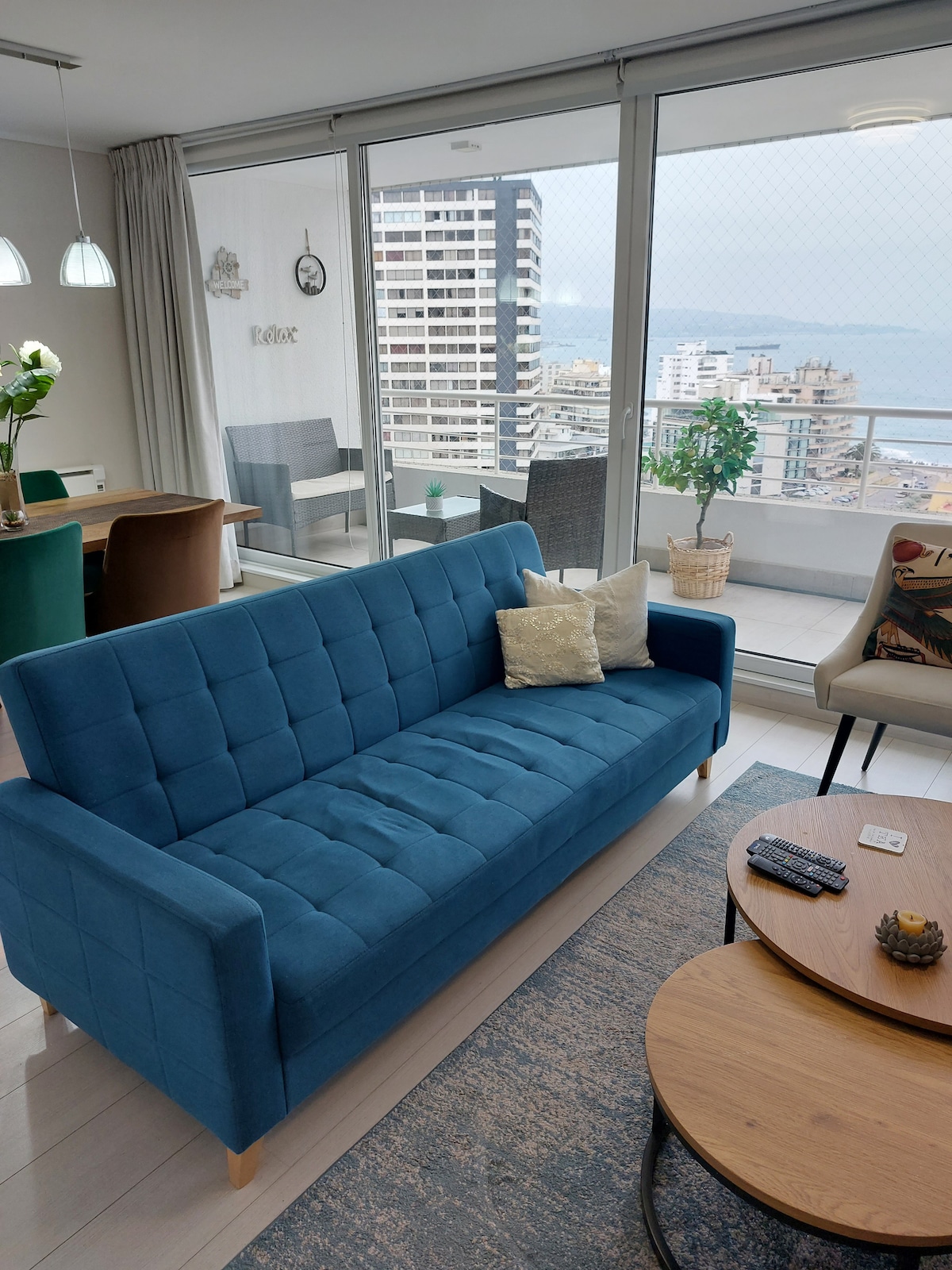 🤩COMFORTABLE AND NEW🤩 Apartment by the beach, 17 floor 🅿️Free Parking ✅Pool additional payment, 1 courtesy income 🏋🏻Gym 💨Sauna additional payment 😉Beautiful view of the city of Viña ✅It has heating and everything necessary for a comfortable stay 🔔Access by electronic lock 🚨No visits can be received ‼️All guests must register your ID to enter 🚭Prohibited smoking 📦We receive your online purchases
