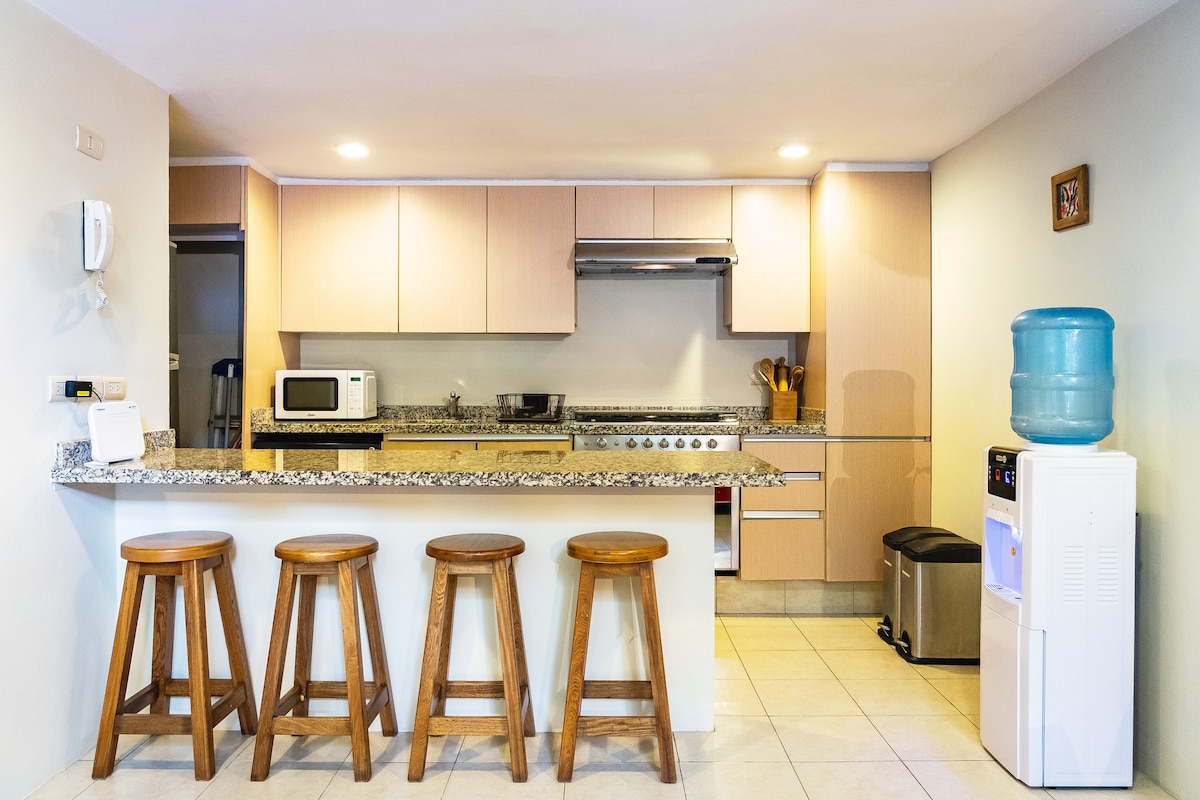 Gyere és pihenj ebben a nagy és jól felszerelt, három hálószobás társasházi lakásban. Pihenj a tágas szabadtéri területeken, és étkezz teljesen felszerelt konyhánkkal. Nagy és kényelmes ágyak ágyneművel a legközelebbi barátaid és családtagjaid közül 8 főnek. Sétálj egyet, vagy hajts le a tulajdonosoddal, aki golfkocsit biztosított a Cosmo Property epikus félsziget végtelenített medencéjéhez. Csak öt perc sétára az Arrocito Beach.