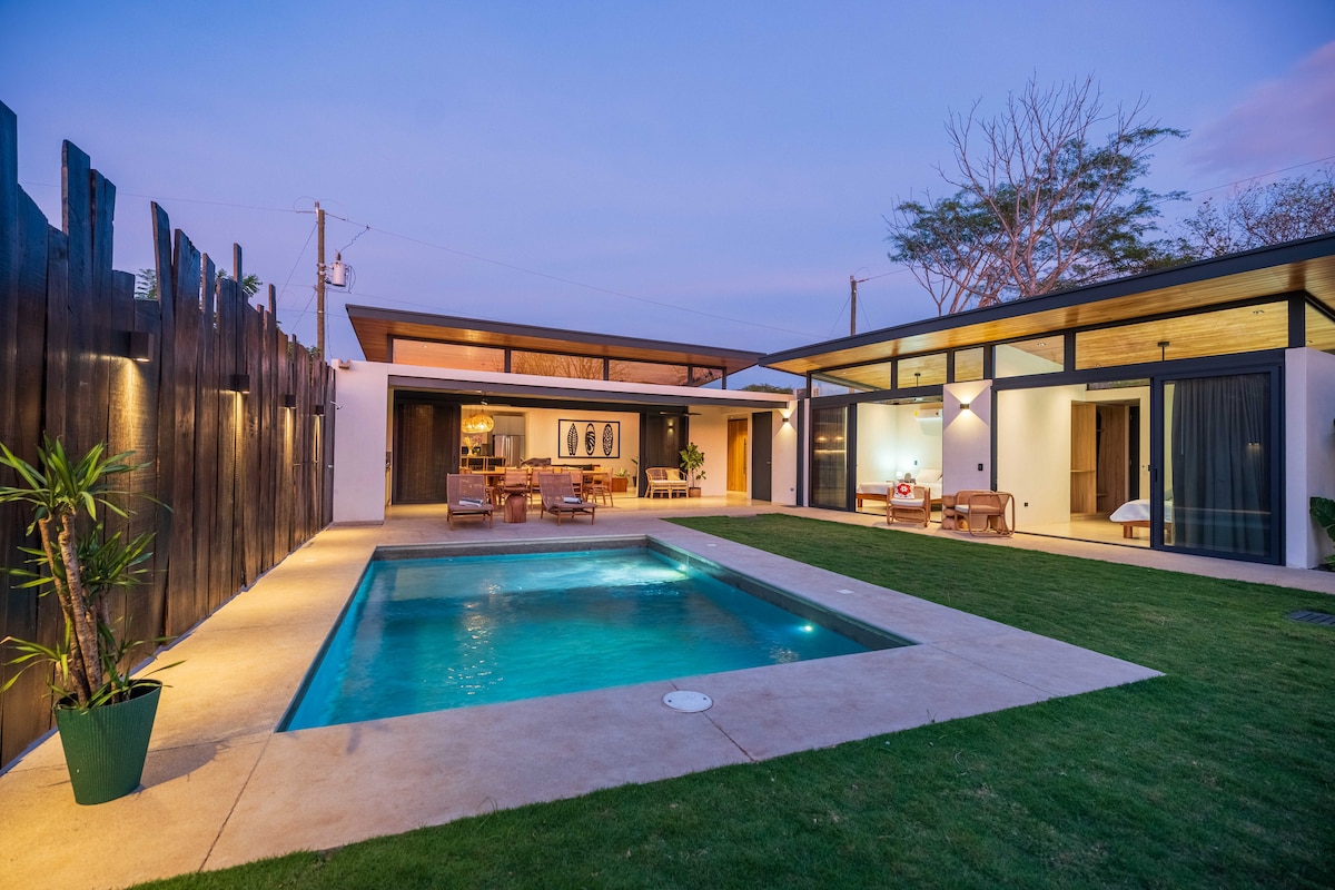 Családi tulajdonban lévő butikvilla vagyunk Tamarindo szívében, amelyet a tökéletes nyaralásodhoz terveztünk. Trópusi oázisunk a skandináv ihletésű modern dizájnt ötvözi a nyugodt légkörrel. A magas mennyezet, a természetes fény és a letisztult vonalak szellős hangulatot teremtenek. A fa, a beton és a fehér falak időtlen eleganciát kölcsönöznek, a kertek pedig békés, természetes környezetet teremtenek. A tökéletes Pura Vida-élmény!