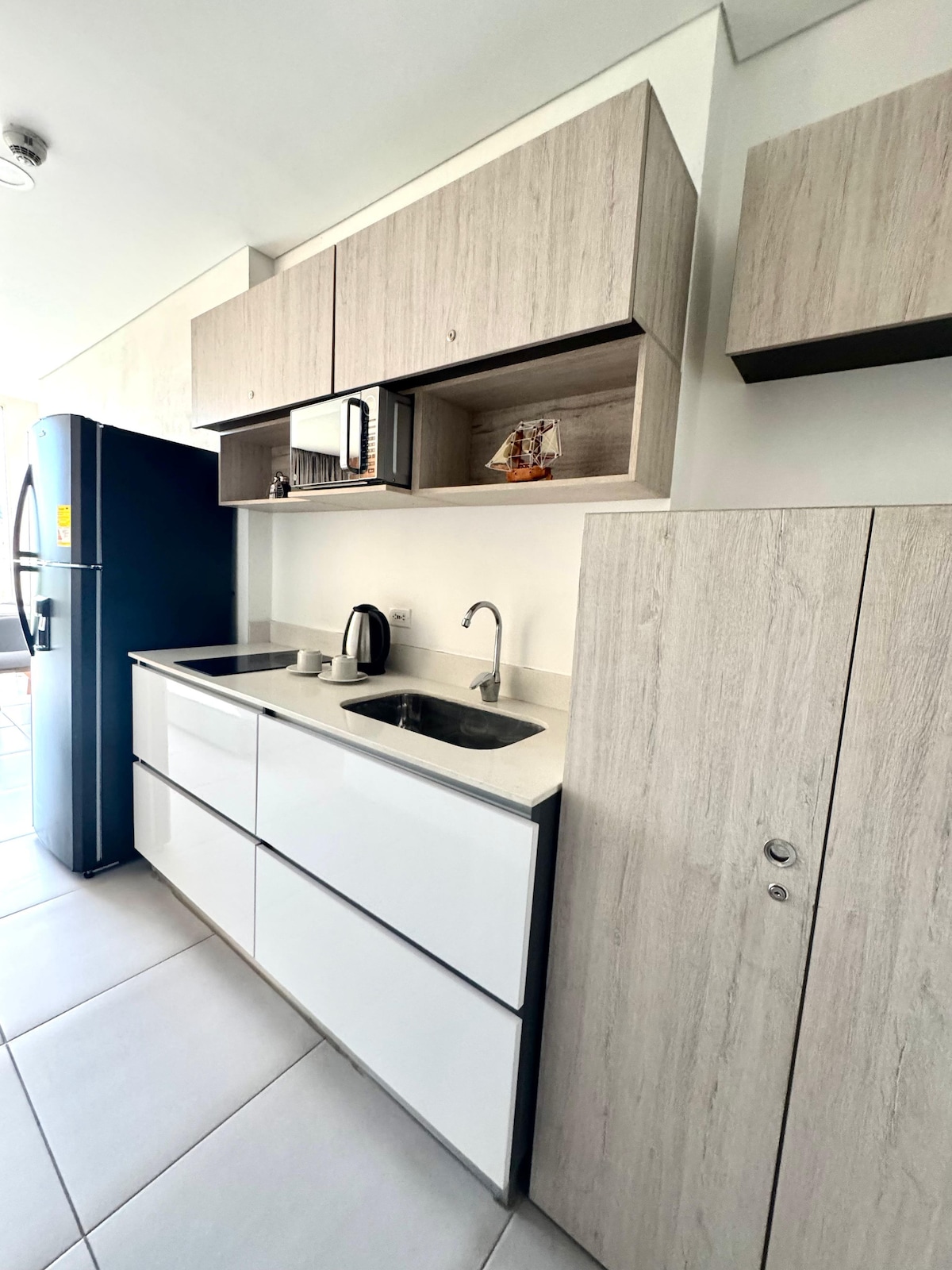 Santa Marta egyik legszebb strandja, a Bello Horizonte - kék zászló tanúsítványa előtt található. Az ingatlan új, modern és teljesen felszerelt. Van egy erkélye, ahonnan hihetetlen kilátás nyílik, egy hálószobája queen méretű ággyal és egy egyszemélyes ággyal, egy king méretű kanapéágy a nappaliban és egy nyitott konyhája, mindegyikben van légkondicionáló. Wifi és TV-kábel, valamint parkolóhely, edzőterem, szauna és gőzfürdő. Mindössze 2 perc sétára a strandtól és a Zazue bevásárlóközponttól.