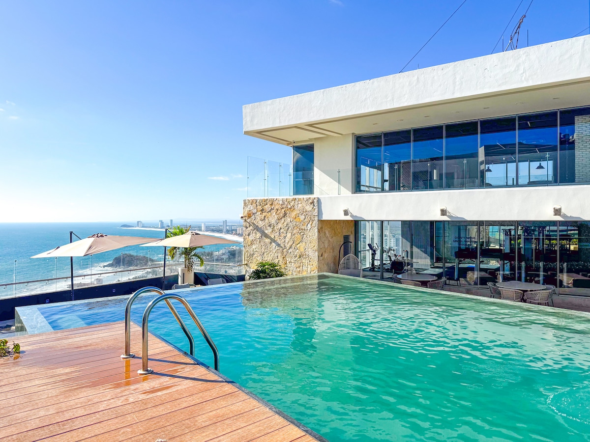 Experience unparalleled luxury in this modern ocean-view apartment, where every detail is designed for your ultimate comfort and relaxation. Wake up to the soothing sound of the waves, sip your morning coffee while admiring the sunrise from your private terrace, and unwind in the infinity rooftop pool with breathtaking ocean views. At Eleve, luxury meets coastal serenity, offering you an unforgettable stay in Mazatlán.