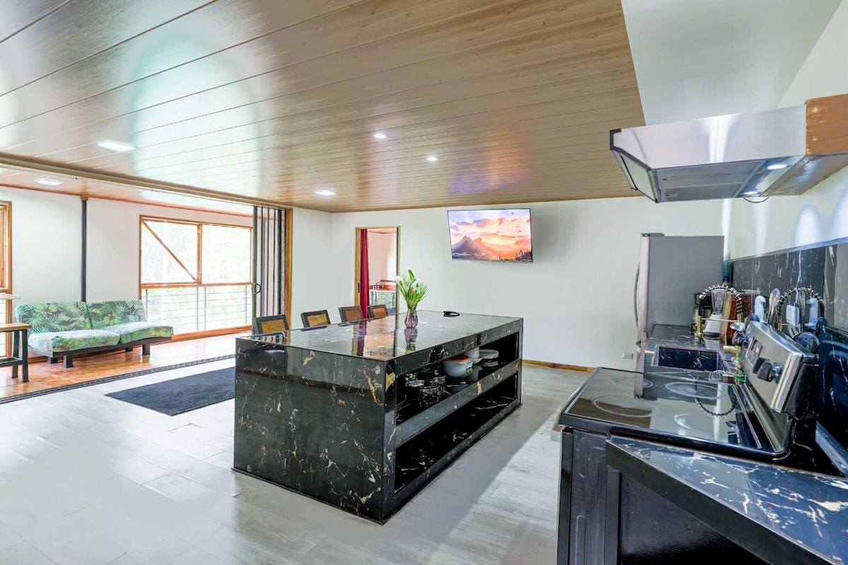 Tágas, új, modern és kényelmes egység saját bejárattal és légkondicionálóval minden szobában. Nagy medence. Kültéri és beltéri zuhanyzó meleg vízzel. Teljes konyha. Csak egy 5 perces biciklizés a dzsungelen keresztül a partig. Szabadtéri terasz. Élvezd a modern kényelmet egy dzsungelparadicsom közepén. Aludj a békák és kabócák nyugtató kakofóniájára, és ébredj fel a tukánok és majmok energiájára. forró beltéri zuhanyzó, kültéri zuhanyzó, gáztűzhely, minden ablakon képernyők stb.