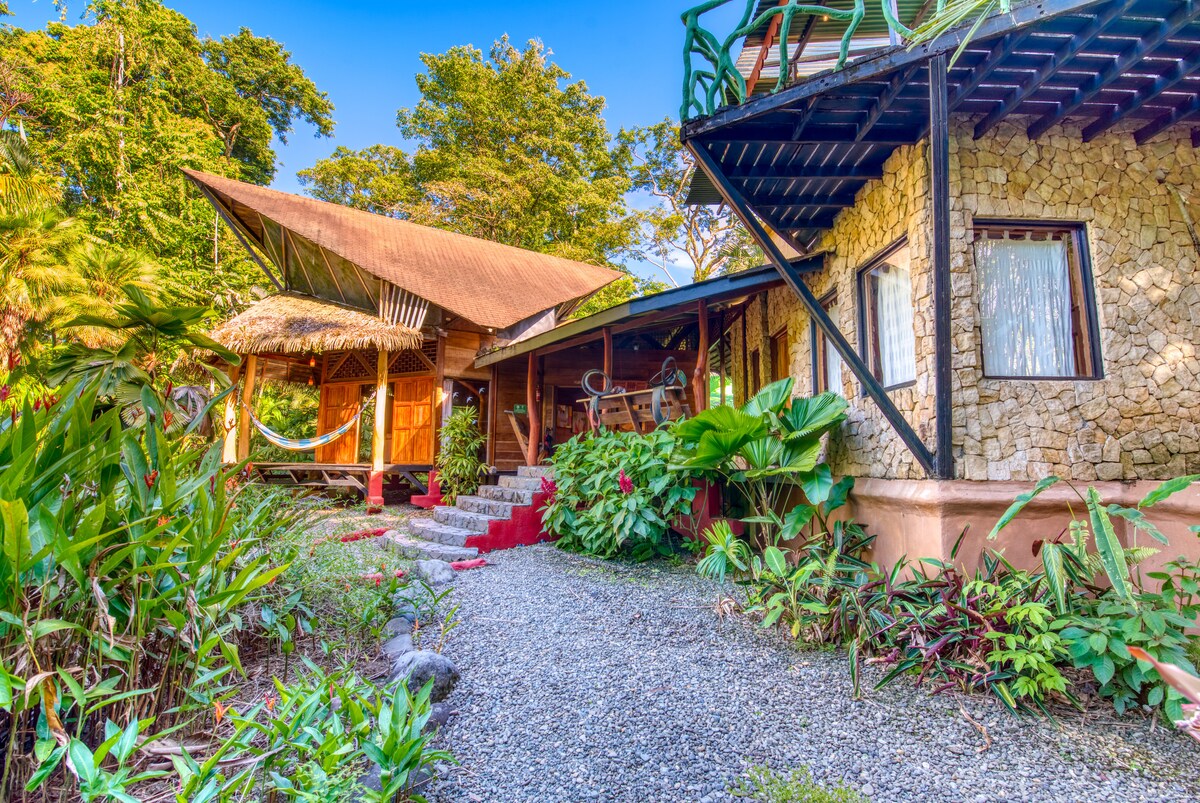 Ez a csodálatos, két hálószobás második emeleti lakás legfeljebb 4 személy elszállásolására alkalmas, és Cocles nyugodt és biztonságos területén található. A strand 5 perc alatt elérhető. A ház a trópusi éghajlat igényeire épült. Magas mennyezet, ablakok nélkül, gyönyörű fa. Nincs szükség légkondicionálásra. Több okból sem szeretnénk légkondicionálót: szörnyű az éghajlatunk, a zajszennyezés, az ablakok helyett a szúnyoghálók miatt. Ha ez rezonál veled, akkor párosítunk! 🫶