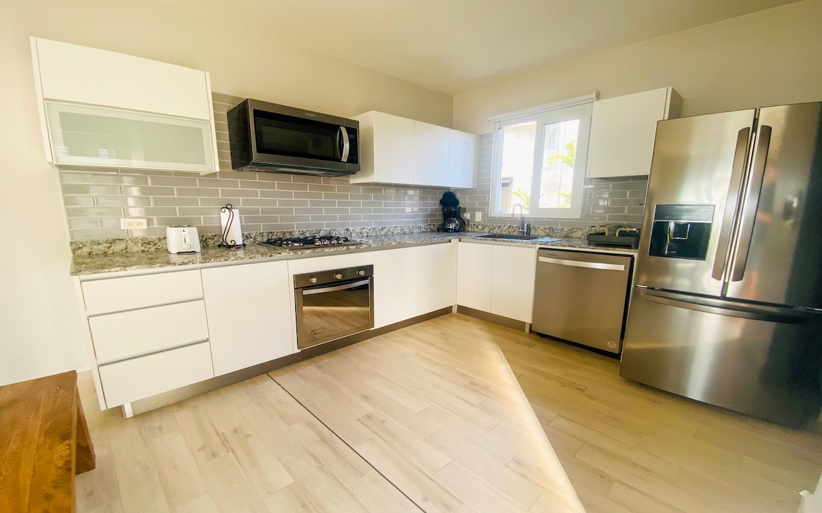 LÁTVÁNYOS TELJES luxus apartman FELSZERELT 3 hálószoba (mindegyik közvetlen kilátással a tengerre), 2 teljes fürdőszoba és fél fürdőszoba látogatás; szoba és fürdőszoba. Finom felületek, 100% rozsdamentes acélból készült konyha és légkondicionálás az egész lakásban, nagy hatékonysággal. Társasház "Hotel Style Living" koncepcióval; Étterem és bár esténként (csütörtök-vasárnap), snack bár a medence területén és Tiki bár a tengerparton, röplabdapálya, tenisz, kosárlabda mellett.