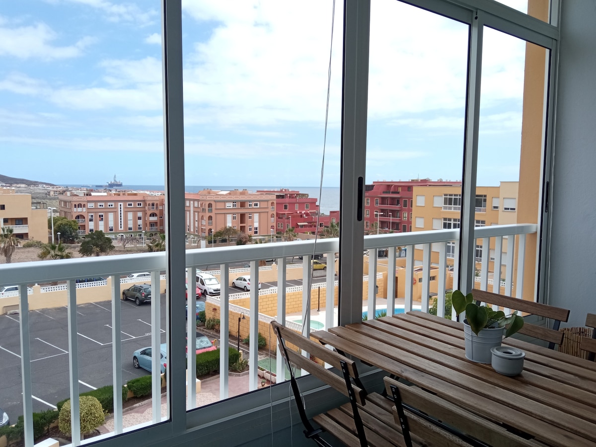 Acogedor y totalmente equipada Olas Suite frente al mar, con acceso directo a la playa 10m, Ideal para los amantes del mar. Muy iluminado y con increíbles vistas. Zona muy tranquila y turística del sur de Tenerife. Alquiler de bicicletas, Excursiones, Supermercado, restaurantes, farmacia, panadería, Centro comercial Rosa Center, muy cerca.