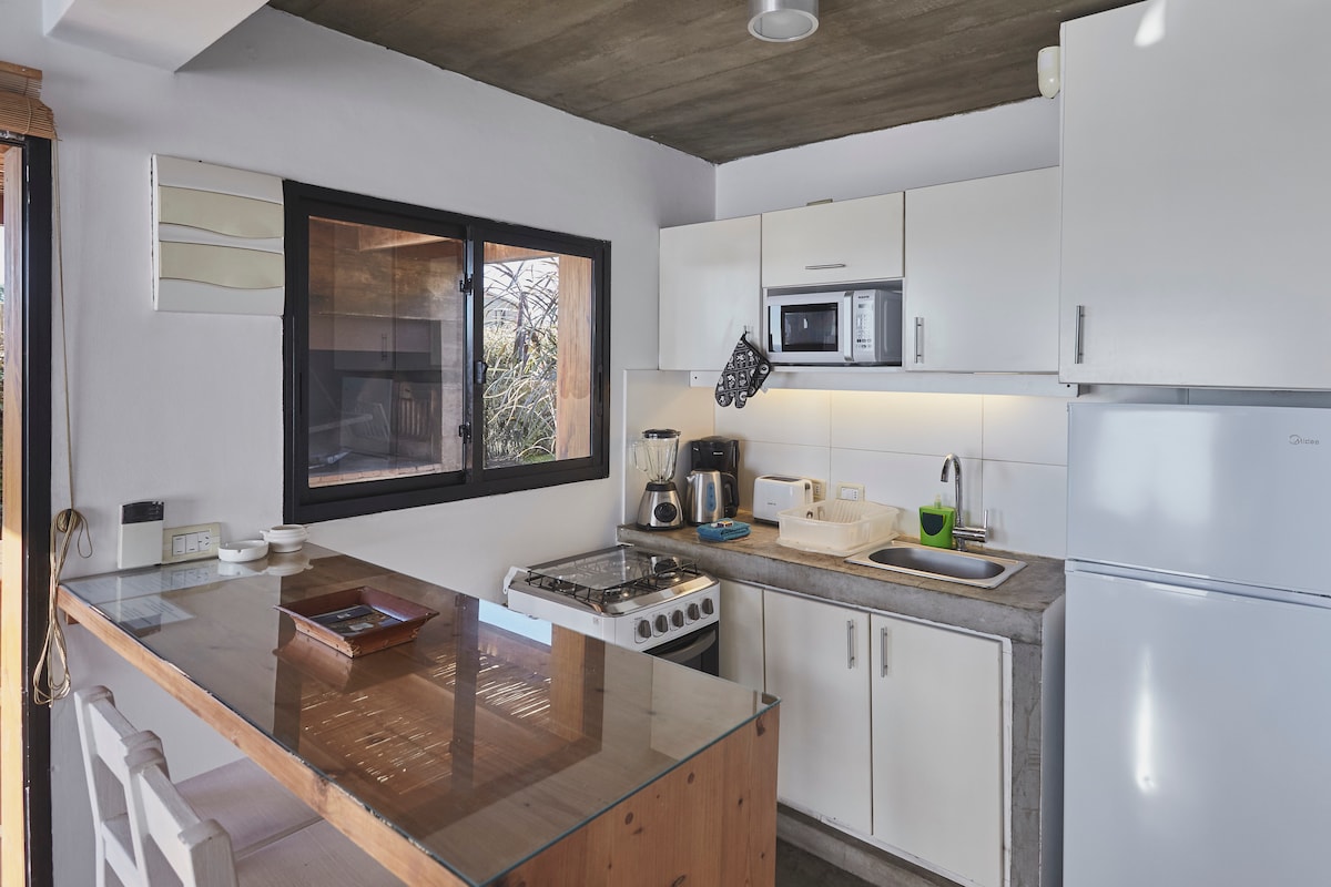 Világos dizájnerkabin lenyűgöző kilátással a Playa de la Viudára. Tökéletes helyen, pár lépésre a strandtól és nagyon közel a városközponthoz. Légkondicionálóval, nagy hatékonyságú fatüzelésű kályhával, teljesen felszerelt konyhával és Wi-Fi-vel. Három független egységből álló butikkomplexum része; mindegyik saját privát grillezővel és helyszíni parkolóval rendelkezik, ami biztonságot és nyugodt szálláshelyet biztosít. Kövess minket a közösségi médiában: Casitas Punta del Diablo. Már nagyon várjuk, hogy vendégül láthassunk!