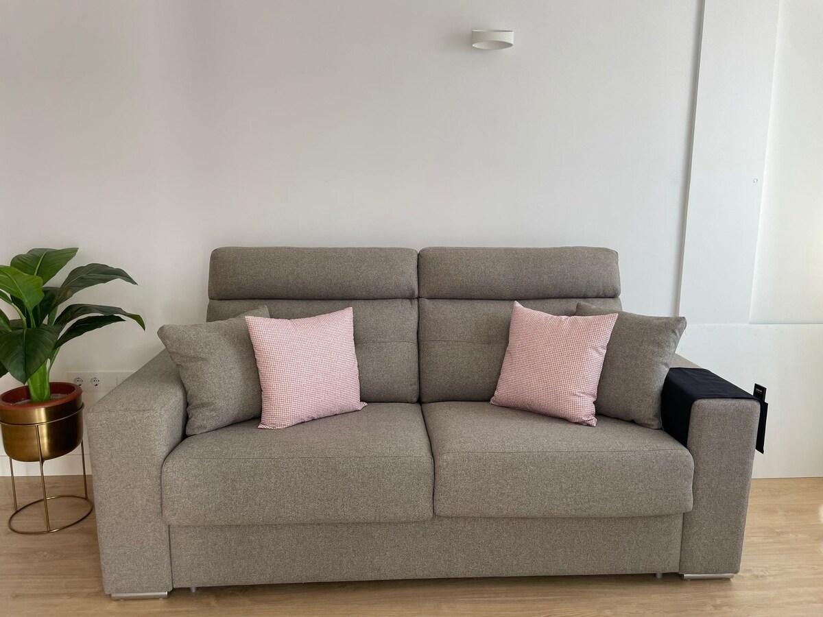 Két perc sétára leszel a Playa de las Vistastól, a tengerre és a tengerpartra néző erkélytől. 47m2 jól elosztott , légkondicionálás, Smart TV 58", internetszálas 100 MB, asztali számítógép. Teljesen felszerelt konyha: hűtőszekrény, elektromos sütő, mikrohullámú sütő, mosógép, szárítógép, Nespresso, turmixgép stb. Minden, amire szükséged lehet egy csodálatos utazáshoz! Hálószoba légkondicionálóval és fürdőszoba esőzuhannyal. Nagyon csendes környék.