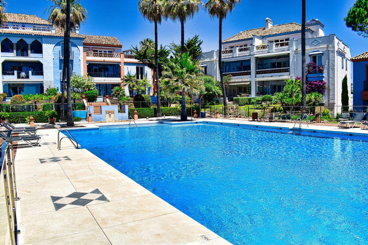 Tágas elülső 2 ágyas/2 fürdő (max 4+1 gyermek) tengerparti ház két emeleten, nagy privát teraszokkal. Széles, megszakítás nélküli kilátás a tiszta mediterrán tengerre Afrikába. Csak néhány méterre a strandtól. Érett, ápolt, gyepes kertek pálmafákkal és szép virághatárokkal. Két nagy közös medence. Kapu a tengerparti ösvényhez közvetlenül a strand mellett. Privát, saját bejárati ajtóval, biztonságos, zárt közösségben, parkolással. Műholdas TV, Wi-Fi, légkondi/fűtés. Tengerparti éttermek sétatávolságra