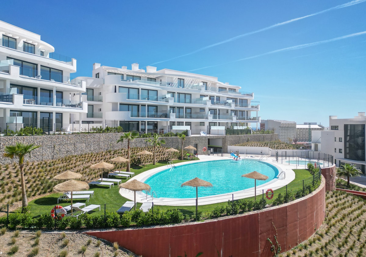 Stílusos, vadonatúj, gyönyörű és csendes apartman (80m2, 2 hálószoba, 2 fürdőszoba, tágas nappali és konyha) 2 terasszal (kb. 36m2) a tekintélyes Higueron között Fuengirola&Benalmadena. Részleges kilátás a tengerre, 20m medence, végtelen medence+gyerekmedence, spa, tornaterem. Bérelhető privát jacuzzi okt. > Taxi 15 perc vagy egyenes vonat 25 percre a repülőtértől. 350m a strandtól & üzletek. Sok-sok sportolási lehetőség - tökéletes az aktív pihenéshez. Szupergyors wifi, 220 intl TV csatorna, parkoló.