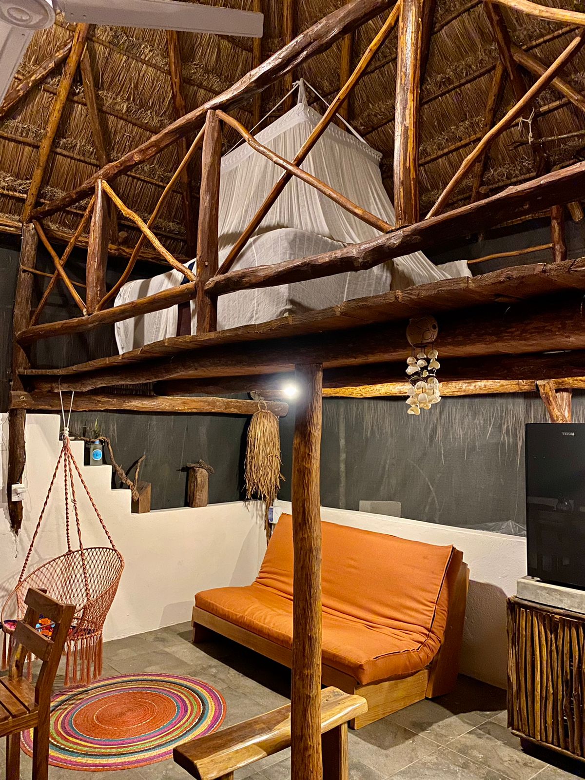 Lépj kapcsolatba a természettel ezen a felejthetetlen kiruccanáson ezen a varázslatos helyen. Alsó szint: 1 teljes fürdőszoba szabadtéri reggelizőbár gyümölcsfakert emelet: 1 teljes fürdőszoba franciaágy szúnyoghálóval mennyezeti ventilátoros erkély Függőágy Független bejárat. Percekre található a turista cenotéktól 15 percre a strandtól.