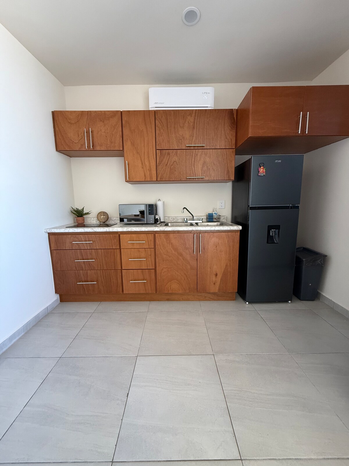 Bőséges hellyel rendelkező lakás, Teacapán főutcáján található, 1 háztömbnyire a tértől és 2 háztömbnyire a malecóntól. A második emeleten található, könnyen és biztonságosan megközelíthető. Elülső terasszal és egy kis terasszal az egyik hálószobában, légkondicionálás csak a hálószobákban.